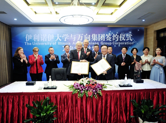 The delegation also visited Zhejiang University, met with representatives of Bank of China, Wanxiang Group, Caterpillar etc.; signed an MOU between Wanxiang Group Corporation and the Board of Trustees of the University of Illinois; attended China-US Investment Cooperation Symposium co-hosted by CPAFFC and China Investment Corporation, having a group discussion with more than 40 Chinese institutions and companies from fields of finance, agriculture, food processing, medical and health care, energy, manufacture, logistic and retail etc.