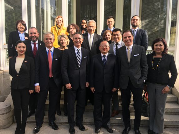Director General Zhang Heqiang of the Department of American and Oceanian Affairs met with an LA delegation headed by Tom Gilmore, Chairman of SCOLA, on November 7. Jeff Gorell, Deputy Mayor of LA and Fabiola Vilchez, President and Executive Director of SCOLA, also attended the meeting.