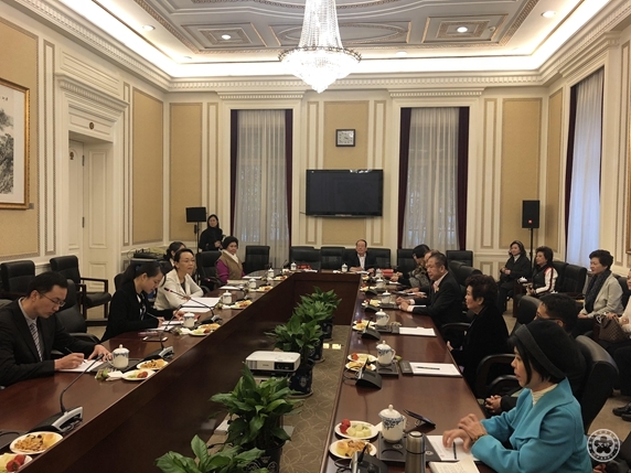 Mme. Lin Yi, Vice President of the Chinese People’s Association for Friendship with Foreign Countries (CPAFFC), met with Mme. Chansamorn Wattanavekin, the founder of Thai-Chinese Women Association (TCWA), Mr. Sanan Angubolkul, Chairman of the Board of the Bangkok College of Beijing Language and Culture University (BLCU), and student representatives from training class for Chinese language consisted of high-level entrepreneurs on April, 3rd.