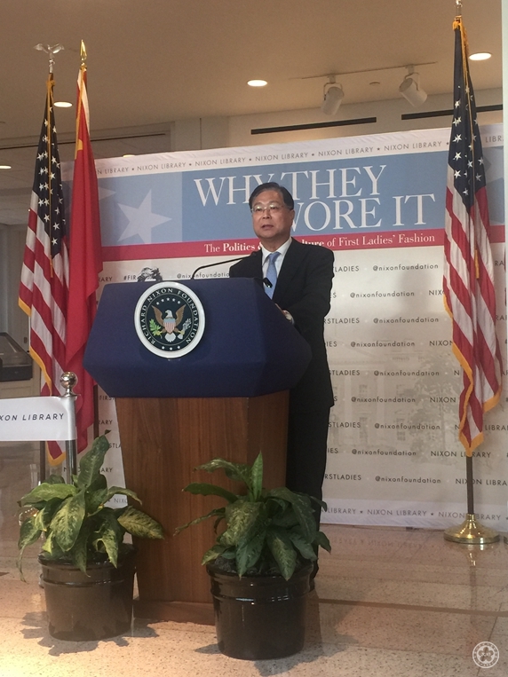 Over 100 people from political, business and other social sectors of southern California attended the opening of the exhibition at the Richard Nixon Presidential Library. The exhibition featured the red coat wore by Mrs. Pat Nixon on her 1972 trip to China, and thus China-US relationship was a highlight at the opening event. Vice President Xie Yuan said in his speech, President Nixon’s visit to China opened the door of communication between China and the United States. It is one of the most important events in the world history. Next year will mark the 40th anniversary of the establishment of China-U.S. diplomatic relations. The exhibition will help the American people to understand that important part of history in China-U.S. relations, and encourage people to treat China-U.S. friendly relationship in a more prudent way.