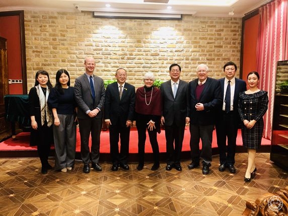 On January 10th, Vice President Xie Yuan met with old friends from the State of Iowa, US, in Beijing. The delegation is consisted of Madam Sarah Lande, the Friendship Ambassador, H.E. Kenneth Quinn, president of World Food Prize Foundation and former U.S. ambassador to Cambodia as well as Mr. Dan Stein, chairman of Muscatine-China Friendship Initiative Committee.