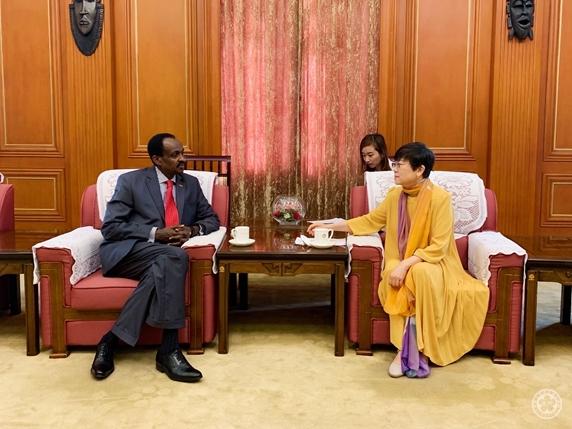 Ambassador Toga thanked Madame Li for meeting him during her tight schedule and highly praised the CPAFFC’s work in promoting people-to-people diplomacy. He said that Ethiopia and China have enjoyed comprehensive and multi-level friendly relations between governments and political parties as well as in culture, education and many other aspects. The Ethiopian Embassy in China is willing to strengthen the coordination and cooperation with the CPAFFC under the framework of Forum on China-Africa Cooperation and the Belt and Road Initiative, to deepen people-to-people and cultural exchanges, expand cooperation between friendship provinces and cities, and continuously enhance mutual understanding between the two peoples, so as to safeguard, consolidate and develop the comprehensive strategic partnership of cooperation between China and Ethiopia.