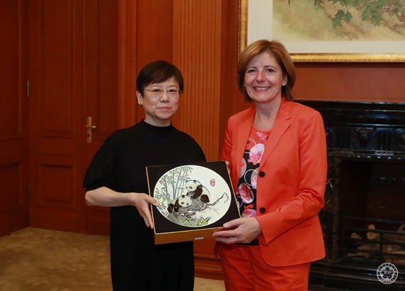On October 8th, President Li Xiaolin meets with Mrs. Malu Dreyer, Governor of Rheinland-Pfalz, Germany.