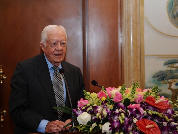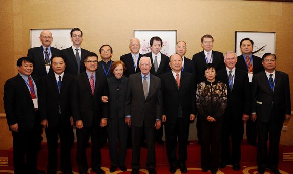 12月12日,以构建新型中美关系为主题的中美关系研讨会在北京举行。第十届全国政协副主席、中美友协会长徐匡迪、中国人民对外友好协会会长李小林、美国前总统卡特及夫人、美国驻华大使骆家辉以及中美两国政界、学界和工商界代表出席研讨会,围绕新时期中美战略互信的构建和中美在亚太地区及全球的协作责任这两大议题进行了广泛、深入的探讨和交流。