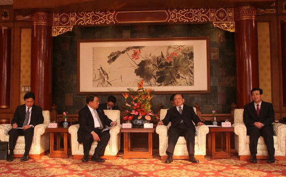 12月27日,中日友好协会会长唐家璇在京会见日本新任驻华大使木寺昌人,井顿泉副会长等在座。
