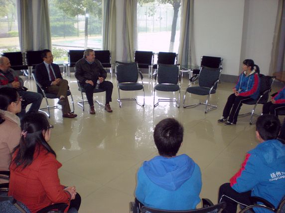The delegation met with Mr. Wang Xiuwen, the principle of Beijing New Oriental School (Yangzhou Branch) in Yangzhou city, and attended the workshop with teachers and students.
