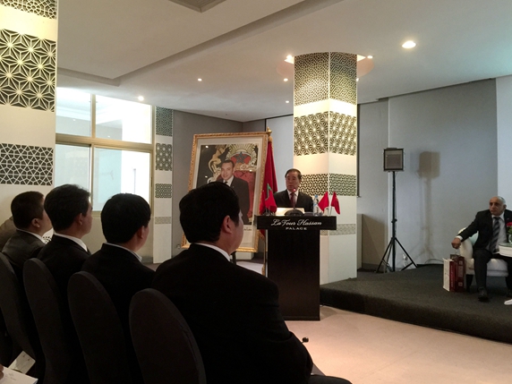 In his speech, Mr. Sun Shuzhong, the Chinese Ambassador to Morocco introduced about the situation and the investment environment in Morocco, ways to avoid investment risks for the Chinese companies and the relationship between China and Morocco.