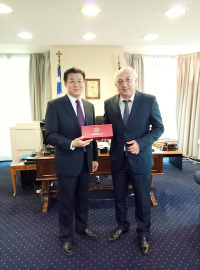 During the visit in Greece, the delegation visited the Deputy Minister of Foreign Affairs of Greece, Ioannis Amanatidis, and met with Llias Psinakis, the President of Amphictyony of Ancient Greek Cities, Mayor of Marathons, and President of Marathons Foundation, they in-depth discussed and reached a consensus about the cooperation of culture, sports and local government. The delegation also exchanged views on relevant cooperation with a number of international organizations such as the Global Found for Cities Development (FMDV) and UNHABITAT.