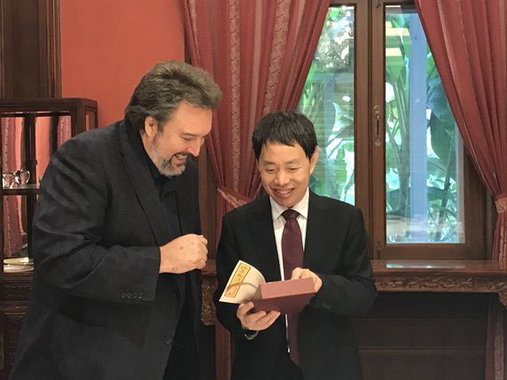 On October 26th, Vice President Hu Sishe met with Canadian delegates from Culture Shawinigan. He talked with Mr. Bryan Pérreault, Director General of the organization, about promoting the exchanges of performing arts and literature between China and Canada.
