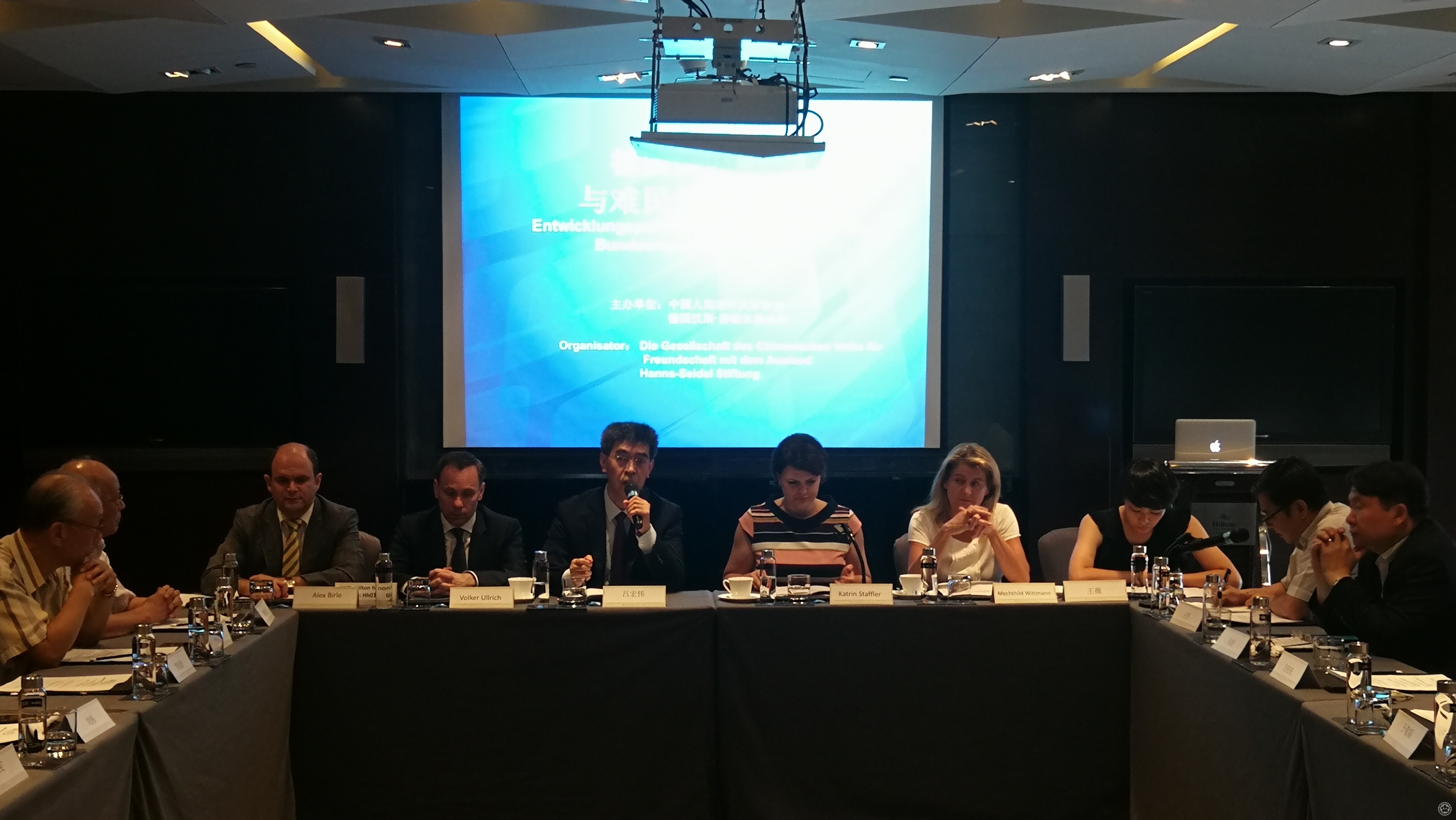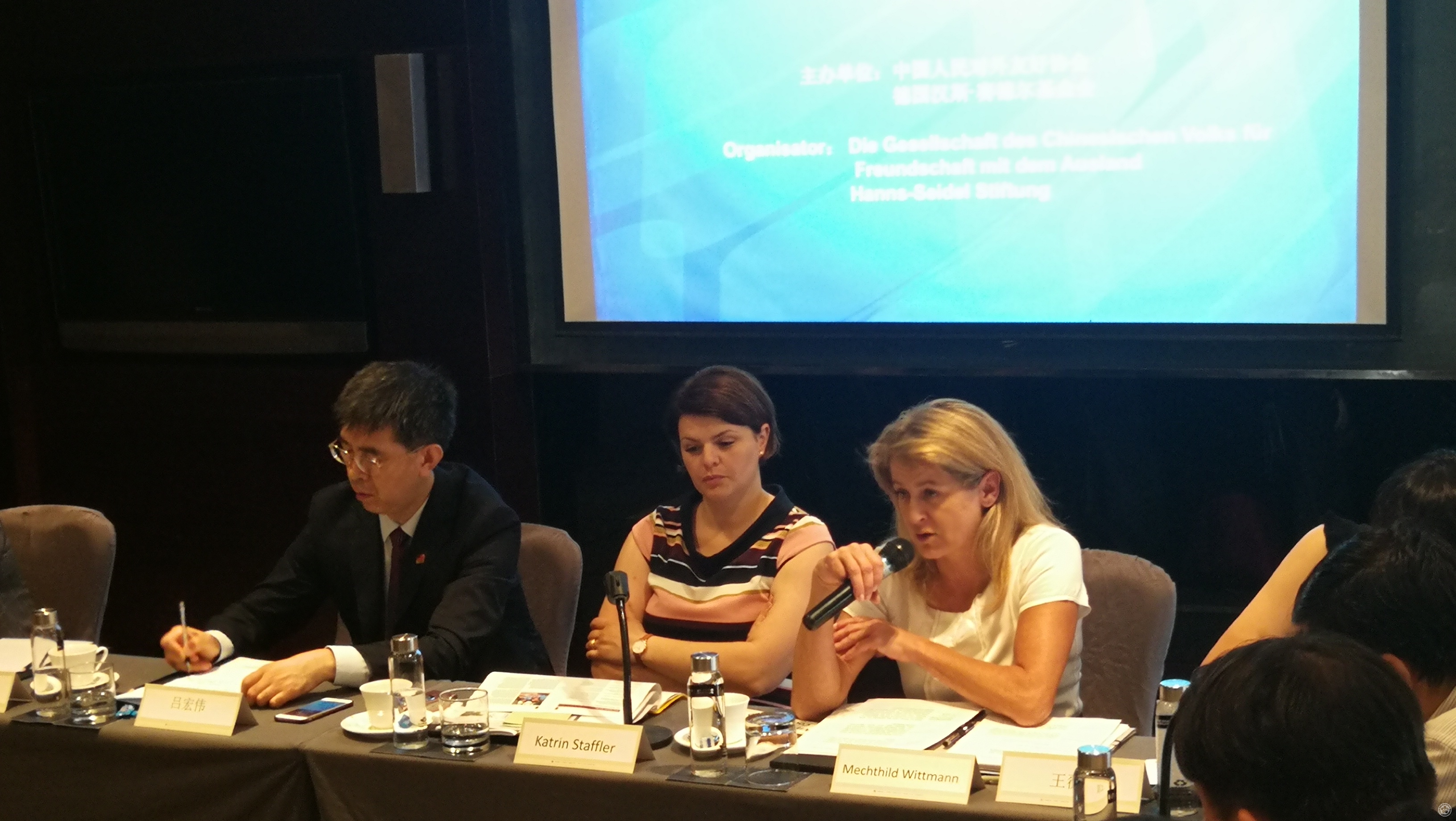 A report on “German Cooperation and Refugee Issues” was held by Seidel Stiftung Foundation and CPAFFC on the afternoon in Beijing. Ms. Staffler and Ms. Wittmann, members of the delegation, made a special report respectively on German development assistant and refugee issue. They also exchanged with Chinese experts and scholars.