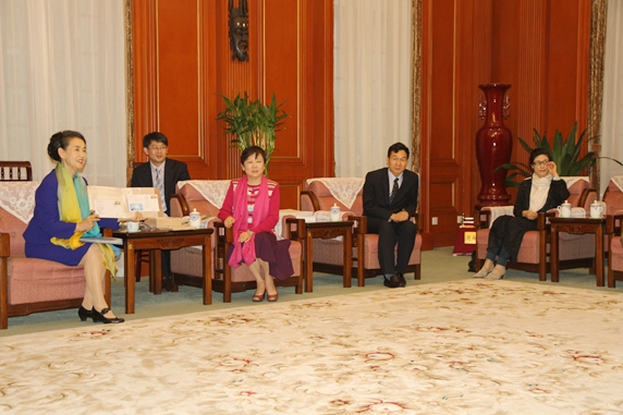 中野良子女士表示,自己20多年来一直努力促进两国国民的交流,也曾得到过中国历届领导人的肯定和鼓励。她希望中日两国能够开展更丰富多彩的文化交流活动。