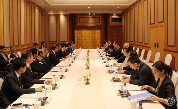 NODA TAKESHI thanked President Tang Jiaxuan for taking time to meet them and thoughtful arrangement for them. He said that Japan-China Association had been adhering to the spirit of the Sino-Japanese friendship since it was founded, and was dedicated to promoting the friendly exchanges of the two peoples in various fields. This year marks the 40th anniversary of the signing of the China and Japan Treaty of Peace and Friendship and also the 40th anniversary of China’s reform and opening-up. Japan and China Association would like to take these as opportunities to make more contributions to improving the bilateral ties.