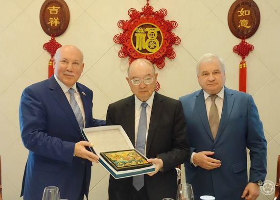 from left to right: Chairman Dmitry Mezentsev, President Chen Yuan, Ambassador Denisov Andrey