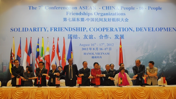 The 7th Conference on China-ASEAN People-to-People Friendship Organization hosted by Vietnam Union of Friendship Organizations and the Vietnam-China Friendship Association was held in Hanoi, Vietnam from 16-17, August, 2012 with the theme of "Solidarity, Friendship, Cooperation and Development". The delegation of the China-ASEAN Association headed by its president Madame Gu Xiulian and the delegations of ASEAN friendship organizations attended the Conference.