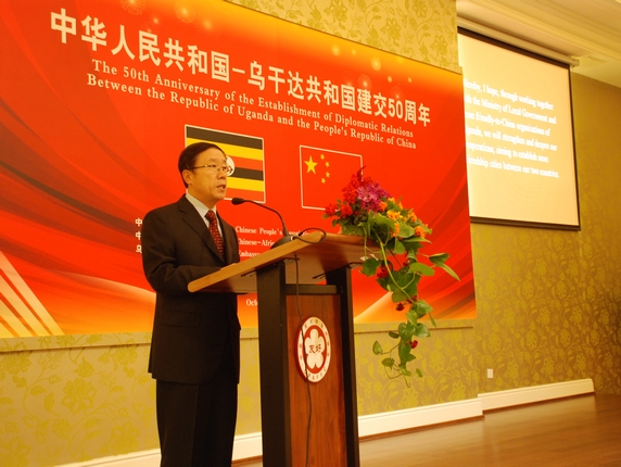 Mr. Feng Zuoku said, the traditional friendship between China and Uganda has a long history and has had a steady and healthy development. The bilateral high-level exchanges has become more frequent, mutual political trust has been increased and our cooperations in various fields have been deepened. China and Uganda have maintained close coordination and cooperation in international affairs and always supported each other on the issues related to the core and major interests. China is willing to work together with Uganda to continue to deepen our cooperations in various fields and make joint efforts to seek new ways of cooperation, especially in the fields of economy and trade, agriculture, infrastructure construction. Therefore, taking the opportunity of the 50th anniversary,China would like to push our friendship to a new stage.
