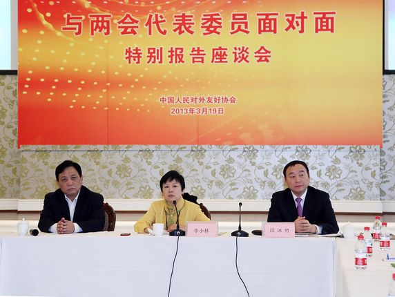 President Li Xiaolin firstly introduced the fundamental facts of the sessions of NPC and CPPCC. This year’s sessions of NPC and CPPCC were held under the new situation of the whole country studying and implementing the spirit of 18th the CPC Congress, and the decisive stage of China completing the building of a moderately prosperous society. In summary, the content of the sessions of NPC and CPPCC included: increasing the confidence by reviewing and summarizing the past experience, making overall arrangement and initiating the enthusiasm, completing changing leaders upon the term of office, which is greatly significant of inheriting the past and ushering in the future. The main feature of the sessions of NPC and CPPCC: the new attitude and appearance and of CPC was revealed; the new images of the new central leaders were highlighted; the new progress and new journey was initiated for the aim of completing the building of a moderately prosperous society; the new development and new trend emerged in practicing and promoting the Chinese socialist democracy. Mme. Li Xiaolin emphasized, China’s Dream raised by President Xi Jinping represented the voice of 1.3 billion Chinese people. The CPAFFC would, according to President Xi Jinping’s requirement, play the role of leadership in nongovernmental diplomatic works, the role of backbone in public diplomacy and the role of bridge in city diplomacy; forever commit itself to the friendly cause of peace, development, cooperation and common benefit.