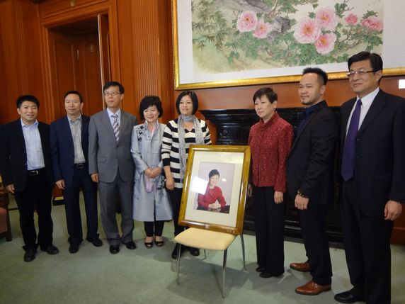On Nov. 5th, 2013, CPAFFC President Li Xiaolin attended the donating ceremony of the national gift The Embroidered Portrait of President Park Geun-Hye of Republic of Korea, presented by China Central News & Documentary Film Group (CCNDFG) and folk artist of Su embroidery.
