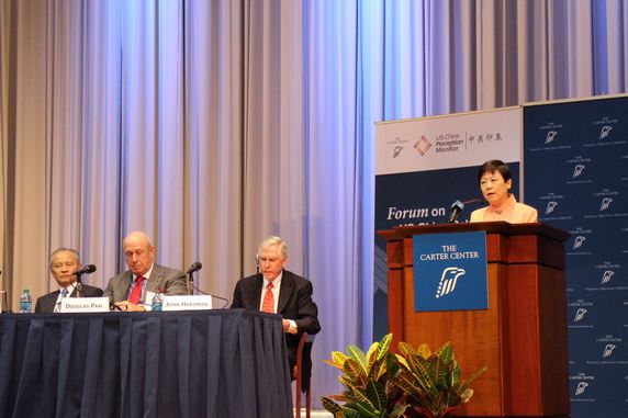 The Forum on US-China Relations co-hosted by CPAFFC and the Carter Center was held on Nov. 11th at Atlanta, Georgia. Jimmy Carter, former US President, Cui Tiankai, Chinese Ambassador to the U.S., Li Xiaolin, President of CPAFFC, Zbigniew Brzezinski, former National Security Advisor, Charlene Barshefsky, former U.S. Trade Representative and other scholars and business leaders attended the Forum, sharing views on how to build the new type of major country relations between China and the U.S..
