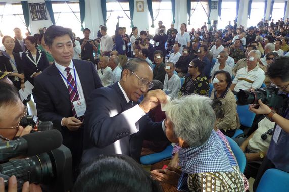 To celebrate the 55th anniversary o the establishment of diplomatic relations between China and Cambodia and the China-Cambodia Friendship Year, the 2013 China-Cambodia Bringing Light Tour, co-hosted by CFAFFC and Cambodia-China Friendship Association, was successfully held in Cambodia from December 1st to 4th, 2013. Led by The Chinese medical team, lead by Mr. Wu Jixiang and Mr. Wang Ningli, President and Vice President of Beijing Tongren Hospital, successfully conducted nearly 100 free operations for Cambodian cataract patients at Preah Ketumealea Hospital.