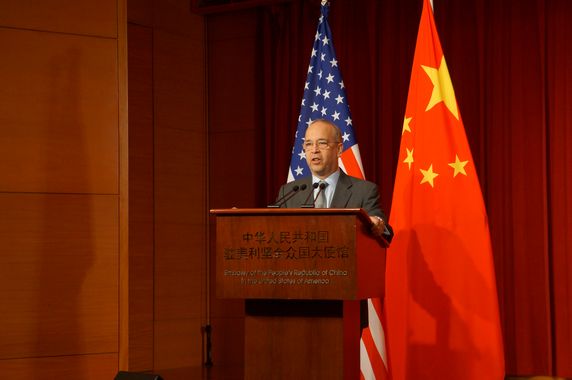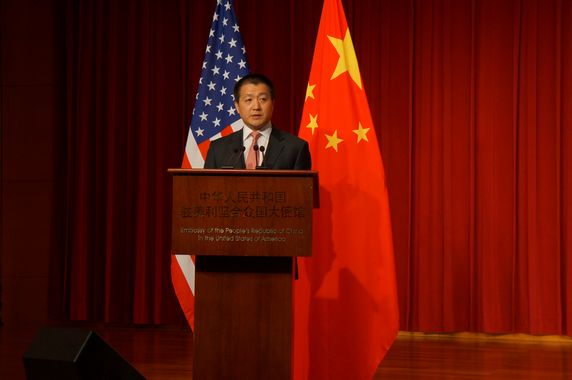 Lu Kang, Minister of Chinese Embassy in U.S. delivering speech