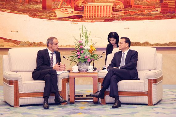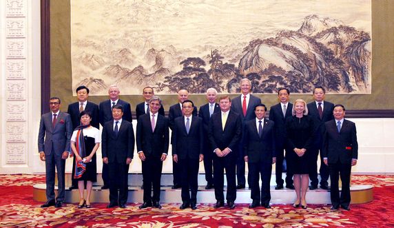 The 2nd Roundtable Summit of the Global CEO Council (GCC) was held at the Great Hall of the People in Beijing on July 9, 2014. Premier Li Keqiang met with all the members of GCC who attended the 2nd Roundtable Summit. They are from Volkswagen, IBM, Siemens, Nokia, Cargill, Prologies, Standard Chartered Bank, DSM, and Schneider. Ministers from NDRC, MFPRC, MIIT, MOA, MOFCOM and Mme. Li Xiaolin, the president of CPAFFC also attended the summit.
