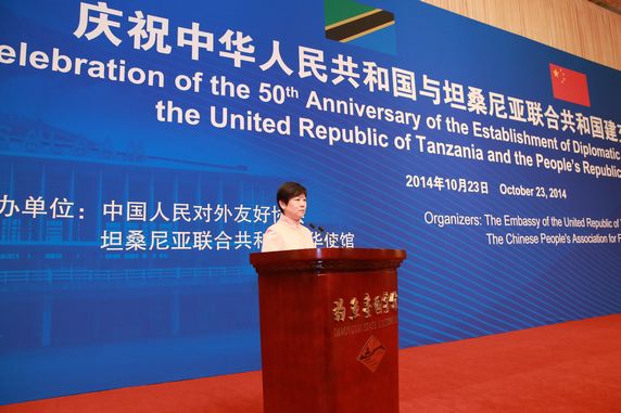 Organized by CPAFFC and the Tanzania Embassy in China, the celebration of 50th Anniversary of China-Tanzania Diplomatic Relations was held in Diaoyutai State Guesthouse Beijing on October 23, 2014. H.E. Mr. Li Yuanchao, Vice President of China, H.E. Dr. Jakaya M. Kikwete, President of Tanzania and other 500 geusts from all fields attended the celebration. Madame Li Xiaolin, President of CPAFFC and H.E. Mr. Abdulrahaman A. Shimbo, Ambassador of Tanzania to China delivered welcome remarks.