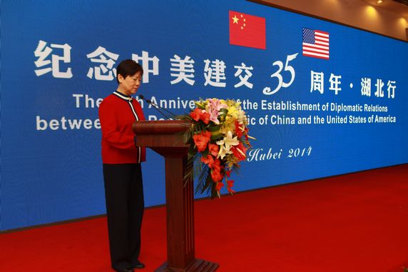 On the afternoon of December 15, activity marking the 35th anniversary of the establishment of diplomatic relations between China and the United States was held in Wuhan, Hubei Province. Over 70 people, including President Li Xiaolin, Governor Wang Guosheng of Hubei Province, Mr. Melvin Gilroy, President of the Found of Woodcock Legacy, Mr. Joseph Zadrozny, Consul General of U.S. in Wuhan, attended the event.
