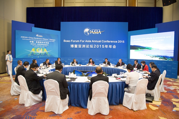 On March 27, 2015, as an important program within the framework of the Boao Forum for Asia (BFA) Annual Conference 2015,the ASEAN-China Governors/Mayors’Dialogue (ACGMD) was held at Boao, Hainan. Leaders from 16 provinces and cities in China and ASEAN countries attended the Dialogue. Through in-depth discussions on the theme of “Local Cooperation: Driving Force to Build a Community of Common Destiny”, the representatives reached various consensus and signed the Joint Statement Issued by the ASEAN-China Governors/Mayors’Dialogue. Vice President Lin Yi of CPAFFC hosted the Dialogue and made a speech.