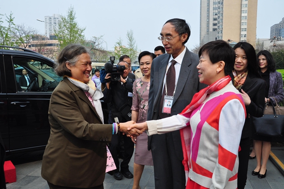 President Li Xiaolin met with H.R.H. Princess Maha Chakri Sirindhorn of Thailand and attended the opening ceremony of the exhibition of photos taken by Princess Sirindhorn at Capital Museum in Beijing on April 4, 2015.
