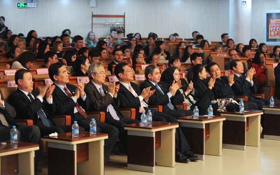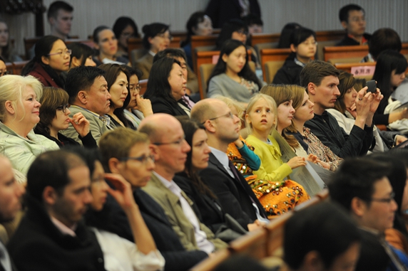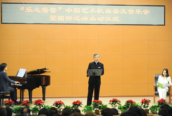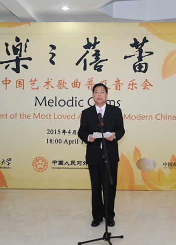The launching ceremony of the world tour of Melodic Gems - Concert of the Most loved Art Songs of Modern China, co-sponsored by the Chinese People’s Association for Friendship with Foreign Countries (the CPAFFC), Beijing Foreign Studies University (BFSU) and China Oriental Performing Arts Group (COPAG), was held in BFSU on April 10, 2015. More than 400 people including foreign diplomats and experts in China, international and Chinese students and professors of the university watched the show.