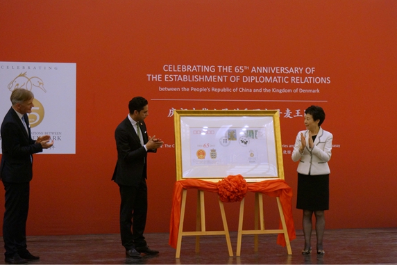 Mme. Yan Junqi, Vice Chairperson of the NPC Standing Committee, Mr. Wang Chao, Vice Foreign Minister, Mr. Song Jingwu, Vice President of the CPAFFC, Mr. Liu Qi, Vice Administrator of National Energy Administration, Mr. Manu Sareen, Danish Minister for Children, Gender Equality, Integration and Social Affairs, Mr. Petersen, Danish Ambassador to China, together with around 500 guests from China’s Ministry of Foreign Affairs, Ministry of Civil Affairs, State Bureau for Letters and Calls, National Energy Conservation Center, CPAFFC, Certification and Accreditation Administration, General Administration of Quality Supervision, Inspection and Quarantine, the Royal Danish Embassy, and enterprises and media of both countries attended the Dinner. Vice President Song Jingwu and Minister Manu Sareen delivered speeches. Mme. Yan Junqi and Minister Manu Sareen jointly unveiled the commemorative envelop for the 65th anniversary of diplomatic relations between the People’s Republic of China and the Kingdom of Denmark. Musical and ballet performance was staged Chinese and Danish artists.