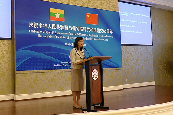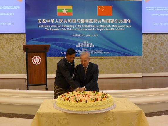 On June 12th, the CPAFFC and the Myanmar Embassy to China jointly hosted the reception in celebration of the 65th anniversary of China-Myanmar diplomatic ties at the Peace Palace of CPAFFC. Mr.Wang Qinmin, Vice Chairman of CPPCC National Committee, Mme.Lin Yi, Vice President of CPAFFC, Mr.Liu Jianchao, Assistant Foreign Minister, Mr.Geng Zhiyuan, President of China-Myanmar Friendship Association(CMFA), Mr.U Thit Linn Ohn, Ambassador of Myanmar to China, together with other representatives from all circles of life and diplomats from ASEAN countries’ embassies to China attended the reception with about 130 people in total.