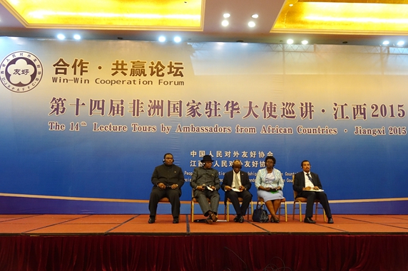 The 14th Lecture Tour by African Ambassadors, sponsored by the CPAFFC and organized by Jiangxi Provincial People’s Association for Friendship with Foreign Countries, was held in Nanchang, capital city of Jiangxi Province on 16 June, 2015. H.E. Michael Kinyanjui, Ambassador of Kenya, H.E. Mr. Ringo F. Abed, Ambassador of Namibia, H.E. Getrude Kasuba Mwape, Ambassador of Zambia, H.E. Horace Ankrah, Deputy head of mission of Ghana, Mr. Afework Shimelis Legesse, Minister Counselorof Embassy of Ethiopia and the officials from relevant department of Jiangxi Provincial People’s Government and the businessmen totaling about 200 guests attended the function.
