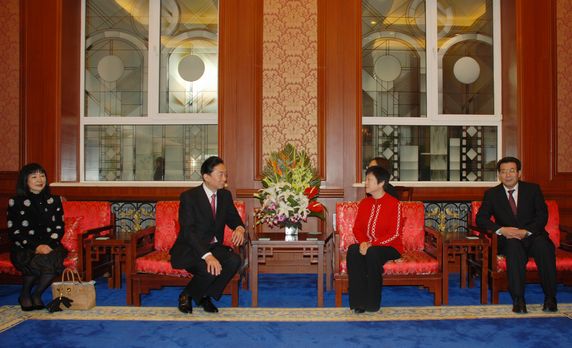 鸠山感谢李会长拨冗会见并表示,日中关系的改善和发展符合两国国民的根本利益。日中作为一衣带水的邻国,双方在历史、文化等诸多方面有很多渊源和共通之处。今后应大力推动两国人文交流,以此来改善两国国民感情,推动日中关系不断发展。