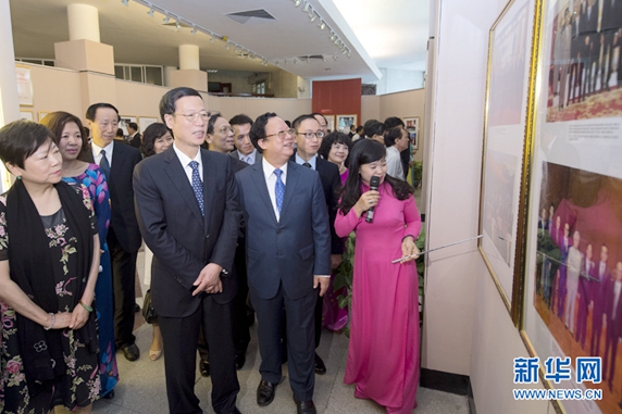 On July 18 2015, H.E. Mr. Zhang Gaoli, Member of the Standing Committee of the Political Bureau of the CPC Central Committee and Vice Premier of the State Council, together with his delegation visited the Photo Exhibition on Ho Chi Minh and China-Vietnam Relations, which was sponsored by CPAFFC and Vietnam Union of Friendship Organizations (VUFO) at Ho Chi Minh Museum in Hanoi. CPAFFC President Li Xiaolin and VUFO Chairman Vu Xuan Hong accompanied Zhang Gaoli at the Exhibition.