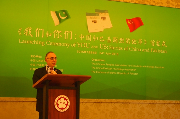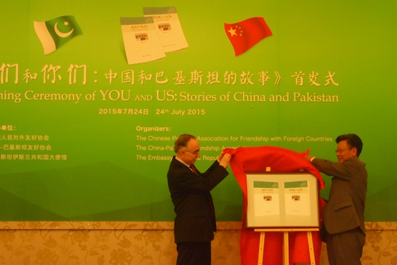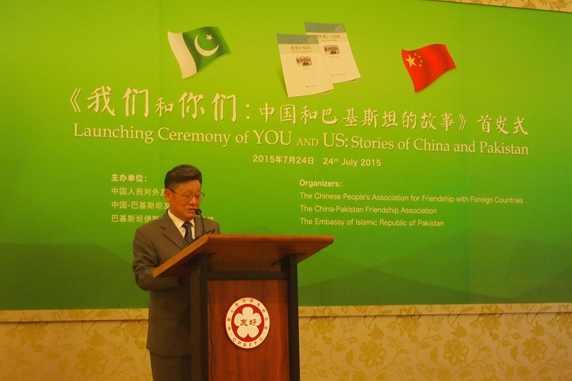 Cohosted by the CPAFFC, China-Pakistan Friendship Association(CPFA) and Pakistan Embassy in China, the Launching Ceremony of “You and Us: Stories of China and Pakistan” was held in the Peace Palace of our association on July 24th, 2015. President of the CPFA Sha Zukang, former Vice Foreign Minister Liu Shuqing, former Vice Foreign Minister Xu Dunxin, President of the Diplomatic Pen-club Cai Fangbai and Pakistan Ambassador to China Masood khalid attended the launching ceremony.