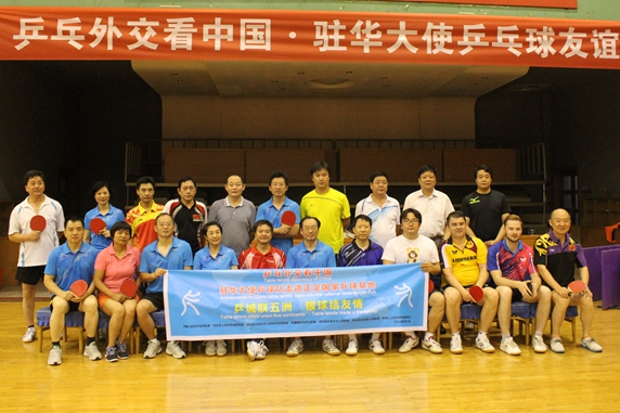 In Zhengding, the joint team of foreign diplomats and CPAFFC table tennis team respectively had friendly matches with table tennis team of Zhengding County government and the joint table tennis team of Hebei provincial government and Shijiazhuang municipal government.