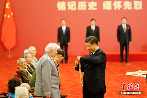On September 2-nd, President Xi Jinping awarded medals to Chinese and foreign veterans and civilians who fought for China in the Chinese People's War of Resistance against Japanese Aggression at the Great Hall of the People in Beijing. As the representatives of the foreign Veteran, Mr.M·A·Gareev, the president of the Russian Academy of Military Sciences attended the ceremony with 2 Russian veterans and delivered a speech.