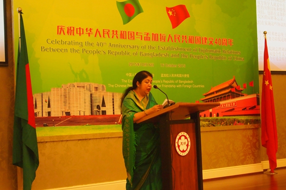 In her speech, Dr. Shirin Chaudhury, Speaker of Bangladesh Parliament expressed that in this era of globalization, the well-being of our two peoples is obdurately intertwined. We want to strive together with friends from China to bring happiness and prosperity for our peoples. and on this happy occasion of the 40th anniversary of the establishment of diplomatic relationship between Bangladesh and China, I reiterate Bangladesh’s firm commitment to strengthened and deepen Bangladesh-China friendship in the days ahead.