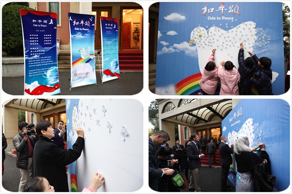 60 years ago, CPAFFC invited Qi Baishi, an influential Chinese Painter, together with another 14 artists, to create the Chinese painting “Ode to Peace” for Helsinki World Congress, declaring China’s good prospect of upholding peace, and against war and aggression, to the world through art; 60 years later, CPAFFC creates the song “Ode to Peace” and its sculpture, aiming to use again the common language of mankind--art--to express Chinese people’s never-ending pursuit for peace.