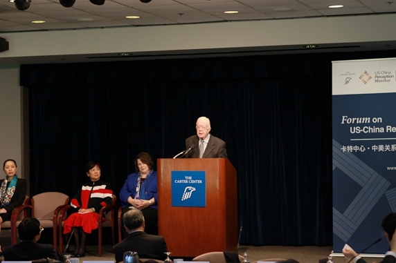 The 4th Forum on US-China Relations was jointly hosted by the Chinese People’s Association for Friendship with Foreign Countries and the Carter Center on November 19 in Atlanta, USA. Former US President Jimmy Carter, Mme. Li Xiaolin, President of the Chinese People’s Association for Friendship with Foreign Countries, Mme. Wu Xi, Charge d’Affaires of Chinese Embassy to the USA, Mr. Li Qiangmin, Consul General of Chinese Consulate General in Houston, Ambassador Mary Ann Peters, CEO of the Carter Center, Mme. Susan Thornton, Deputy Assistant Secretary of US State Department attended the forum and delivered speeches.