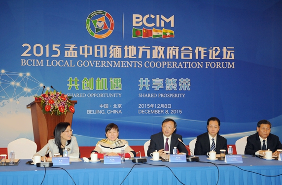 Hosted by the Chinese People’s Association for Friendship with Foreign Countries (CPAFFC) and China International Friendship Cities Association (CIFCA), BCIM Local Governments Cooperation Forum was held at Conference Hall of Beijing Hotel on December 8th. Ministers, governors, mayors and diplomats envoys and representatives to China from Bangladesh, India and Myanmar and Chinese provincial and municipal leaders, representatives of Ministry of Foreign Affairs, National Development and Reform Commission (NDRC) and enterprises, totaling about 160 people were present. Mr. Yang Jiechi, State Councilor and Mme. Li Xiaolin, President of CPAFFC and CIFCA addressed the Forum. Mr. Wang Xiaotao, Vice Chairman of NDRC and representatives of Bangladesh, India and Myanmar also made speeches at the Forum. Vice President Lin Yi of CPAFFC and CIFCA delivered a closing speech.