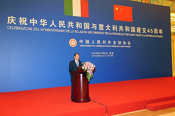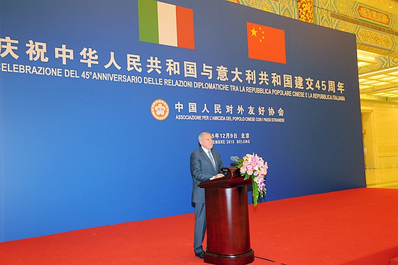 On December 9th, the reception celebrating 45th anniversary of establishment of China- Italy diplomatic relations was held in the Great Hall of the People by the Chinese People’s Association for Friendship with Foreign Counties (CPAFFC). 200 guests from China and Italy, including Mr. Zhang Ping, Vice Chairman of the Standing Committee of the National People’s Congress (NPC), Mr. Pietro Grasso, President of the Senate of Italy, Mme. Chen Xiurong, Vice Chairperson of the Law Committee of the Standing Committee of the NPC, Mr. Song Jingwu, Vice President of the CPAFFC, Mr. Ettore Francesco Sequi, Ambassador of Italy to China, attended the reception.