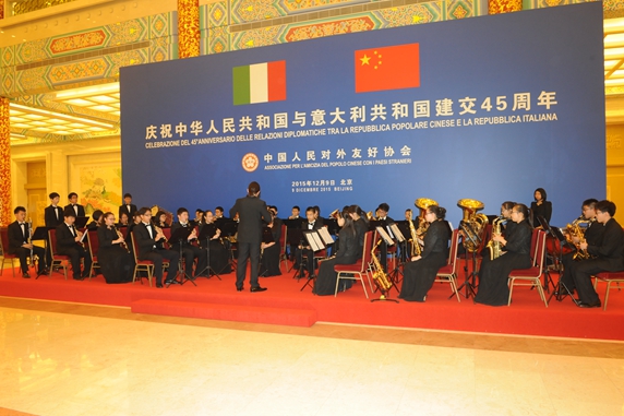 The Orchestra Band of Beijing Xicheng Foreign Languages School playing China and Italy’s music in the reception