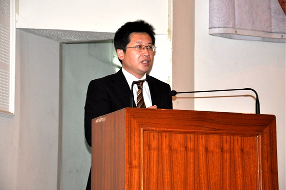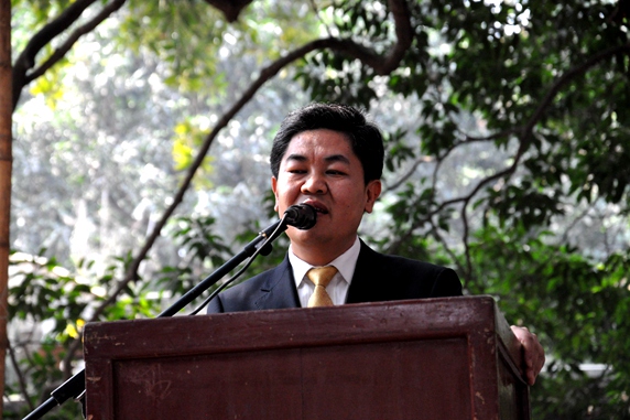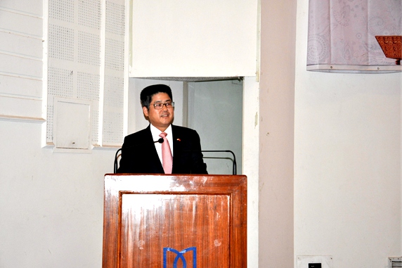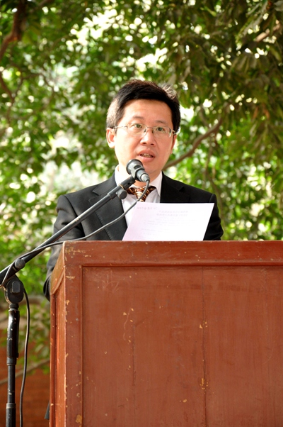 H.E. Mr. Le Yucheng, Vice Chancellor Prof. Sopory, Mr. Ji Wei giving remarks at the opening ceremony at the JNU