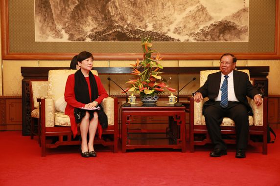 President Li Xiaolin firstly expressed congratulations to H.E. Bounnhang VORACHITH on his being elected as the General Secretary of the Central Committee of the LPRP and the President of Lao People’s Democratic Republic and extended her gratitude to H.E. Bounnhang VORACHITH for meeting with Chinese friendly personages regardless of his tight schedule. She said that the friendship between China and Laos is quite precious, which largely depends on the hard work of generations. Chinese people will never forget the contribution of late Lao Foreign Minister Quinim Pholsena and other leaders of older generation to the China-Laos friendship. and the descendants of their families are always welcome to visit China.