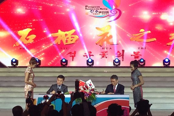The Mayors of Xi’an and Jinju sign the Agreement of the Establishment of Friendship Cities between Xi’an and Jinju
