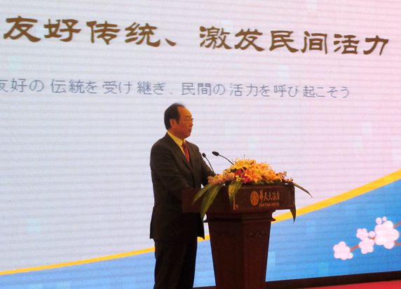 President Tang Jiaxuan stressed in his speech at the opening ceremony that the curren t cause of China-Japan friendship is not only the extension of the two thousand years history of the friendly exchanges between the two countries, but also relates to the happiness of the generations to come. Therefore, the two countries should overcome difficulties and firmly promote the bilateral relations with confidence. Whatever the situation is, the two countries could not forget the original purpose of friendship, could not abandon the idea of friendship and lay down the flag of friendship.