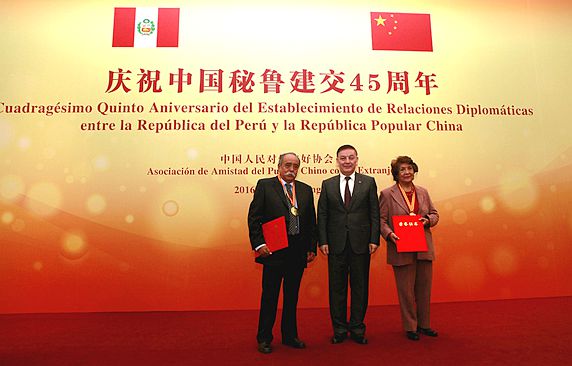Vice Chairman Arken Imirbaki also conferred China-Latin America & the Caribbean Friendship Medal to the outstanding Peru writer Juan Morillo and his wife who has been engaging in the cause of the people-to-people friendship.