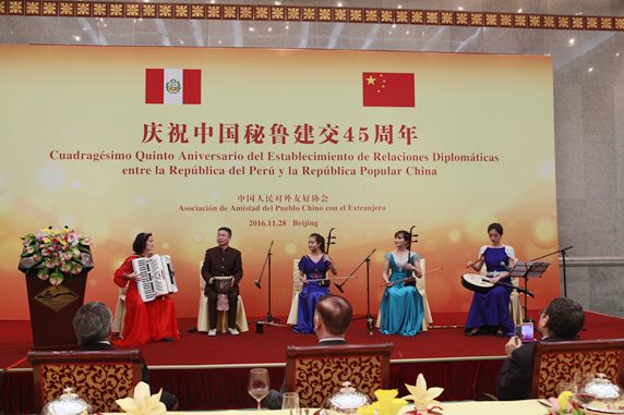 Vice President Hu Sishe and Ambassador Carlos Capunay delivered speeches respectively on the reception. Vice President Hu Sishe pointed out that since the establishment of diplomatic relations, the bilateral ties have been keeping long-term, stable development, the exchanges in various fields increased gradually and the people-to-people friendship has taken deeper roots in the two peoples. Ambassador Carlos Capunay thanked the Chinese side for long-term supporting and said that the Peru side is willing to continue strengthen the cooperation with China and further promote the bilateral relations.